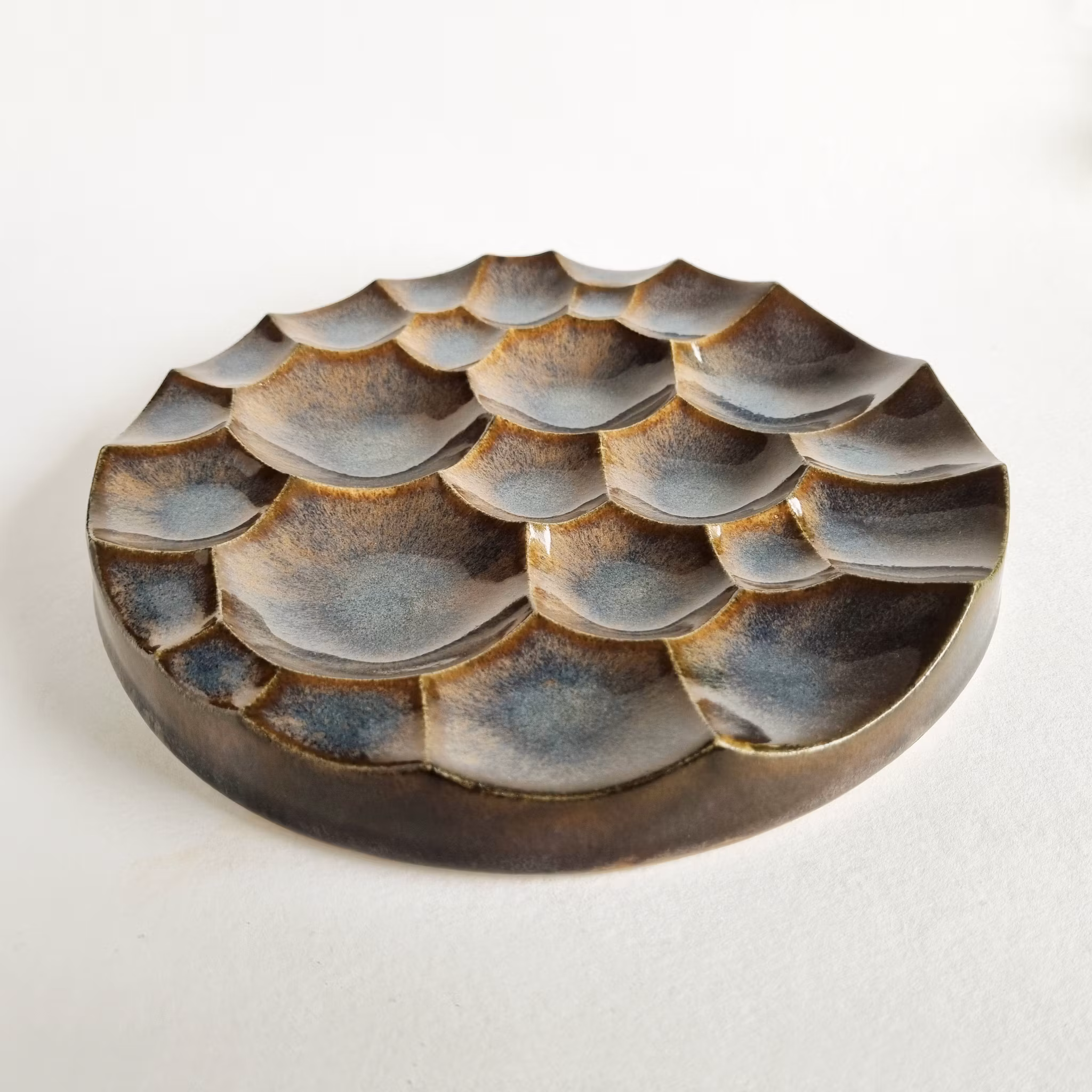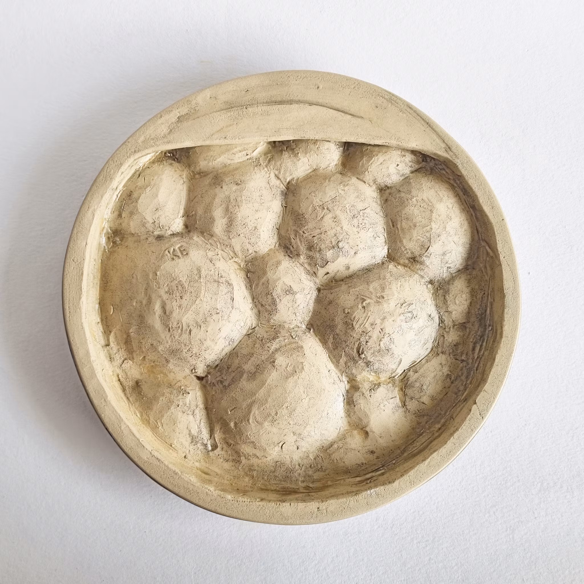 Form för trädgården för insekter att dricka vatten ur. Går också att hänga som väggskulptur. Diameter ca 24 cm, höjd ca 3 cm. Handgjord i stengodslera.